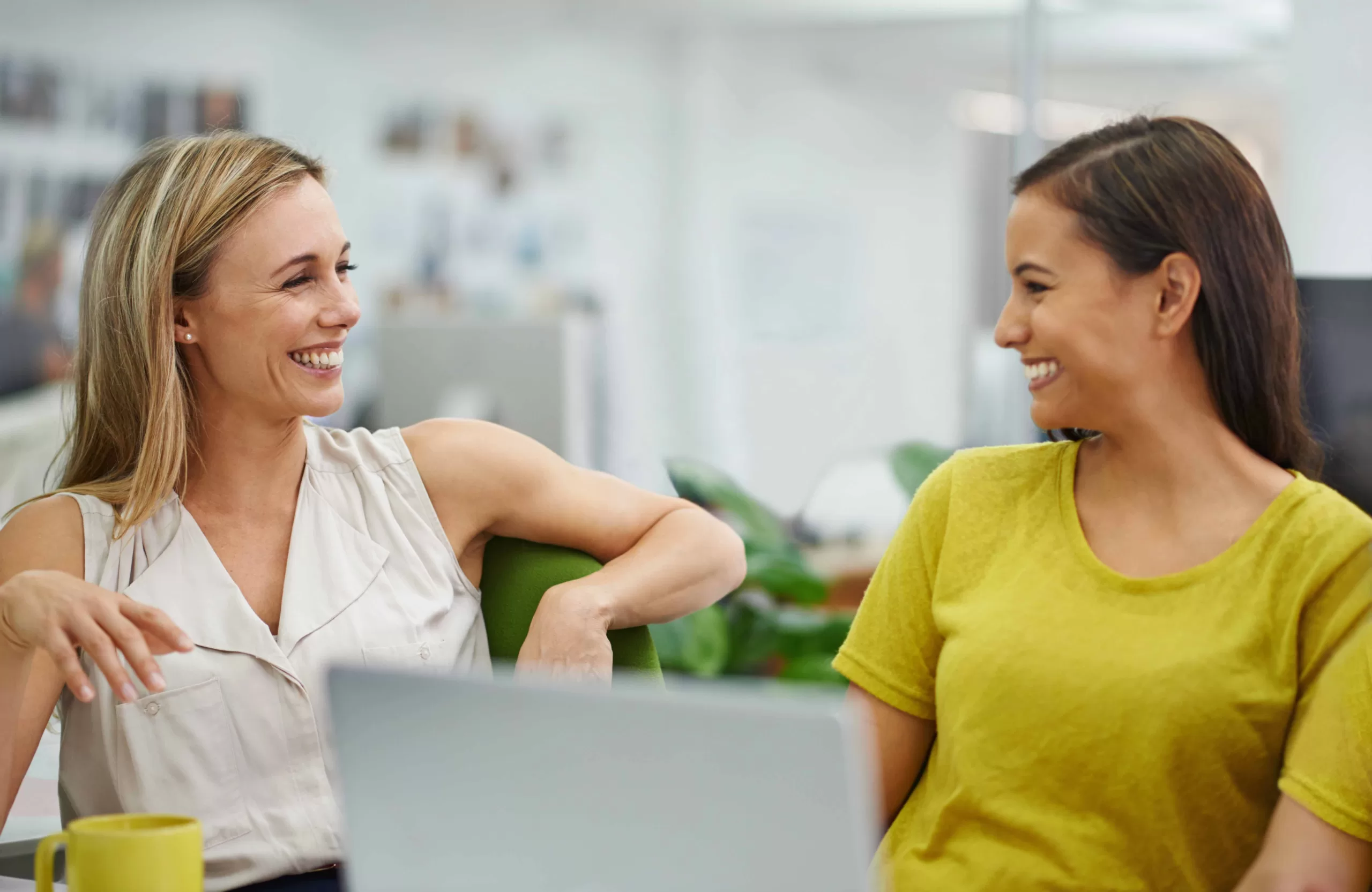 Contoh: Dua rekan kerja berbicara di ruang istirahat tentang pekerjaan, berita terkini, atau kegiatan akhir pekan.