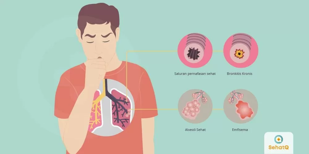 Penyebab: Merokok tembakau adalah penyebab utama PPOK. Paparan jangka panjang terhadap zat-zat iritan seperti asap rokok, asap dapur, atau polusi udara dapat menyebabkan penyakit ini.
