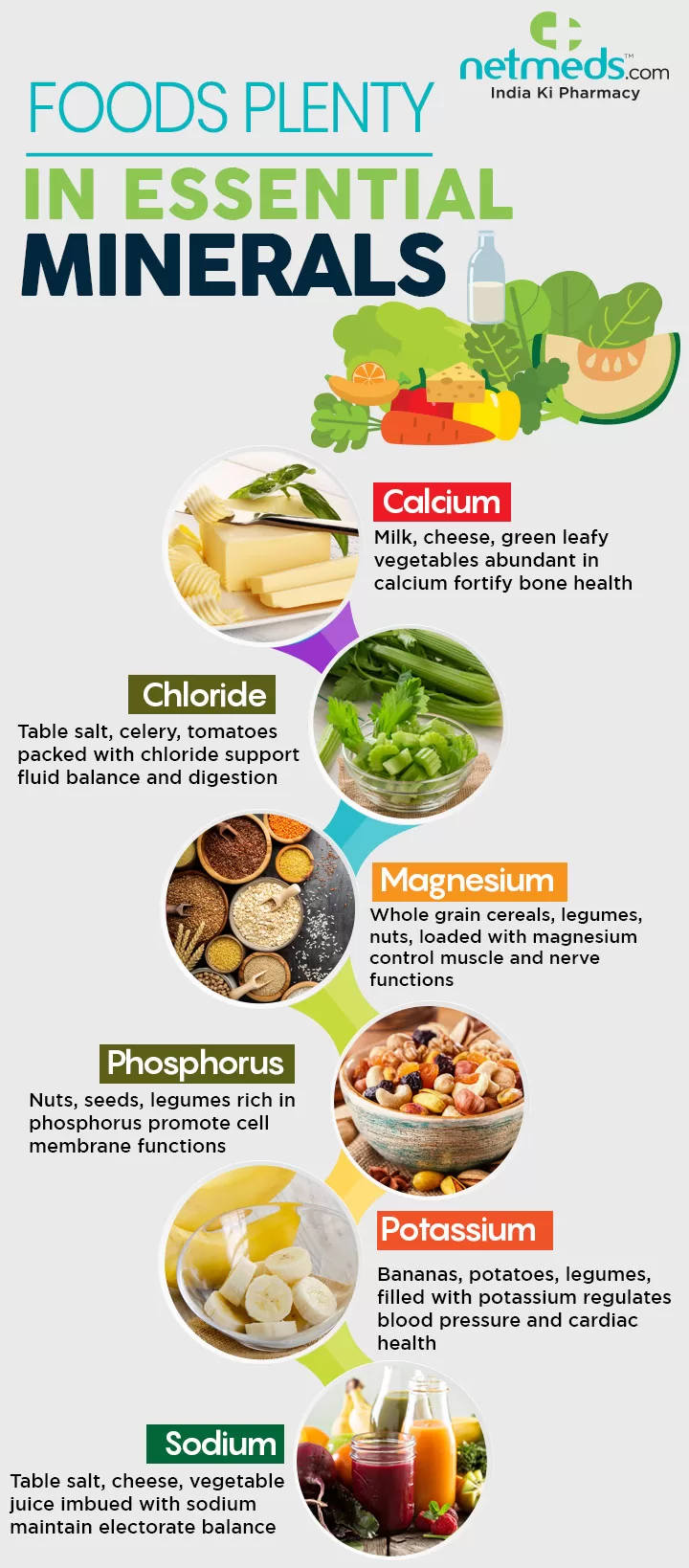 Nutrisi yang diperlukan dalam jumlah kecil untuk menjaga keseimbangan tubuh dan berbagai fungsi, seperti pembentukan tulang (kalsium) dan regulasi tekanan darah (natrium). Sumber mineral termasuk sayuran hijau, biji-bijian, ikan, dan produk susu.