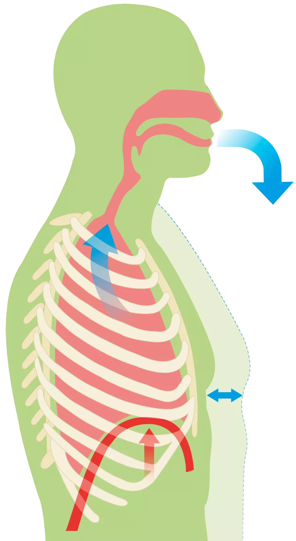Proses dimulai dengan inhalasi, di mana udara dihisap melalui hidung atau mulut. Hidung memiliki serangkaian fungsi penting, termasuk menyaring, menghangatkan, dan melembapkan udara sebelum mencapai paru-paru.